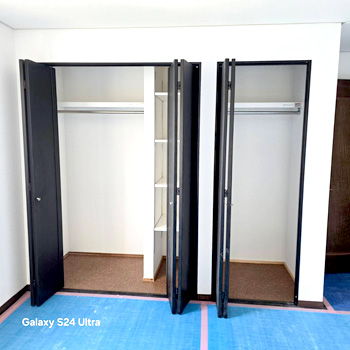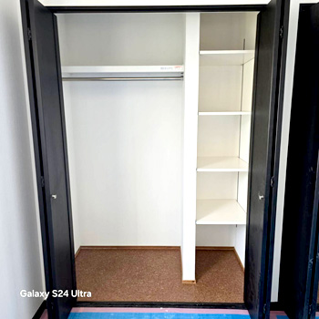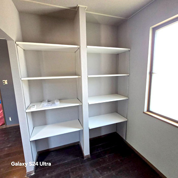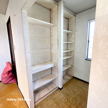 クローゼットは、収納棚の棚板や仕切りを新たにしております。