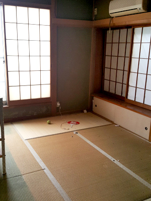 | 玄関からあがった先のキッチンです。 | キッチンの前には琉球畳を敷きました。 | |