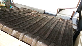 築年数が経過し瓦の下地が傷んでいたため、波板に葺き替えを行っております。